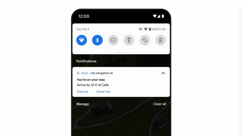 این ویژگی تازه با استفاده از قابلیت مسیریابی گامبهگام یا پیچبهپیچ که گوگل مپ با آن شناخته میشود، به کاربران امکان میدهد بدون نیاز به روشن نگه داشتن نمایشگر تلفن خود، جزئیات مهم سفر فعلی خود را از جمله در بخش نوتیفیکیشنها ببینند. همچنین برای استفاده از این ویژگی نیاز به ورود کامل به حالت ناوبری نقشه نیست و این امکان فراهم است که کاربر با یک نگاه سرعت و تغییرات ارتفاع را مشاهده کند.